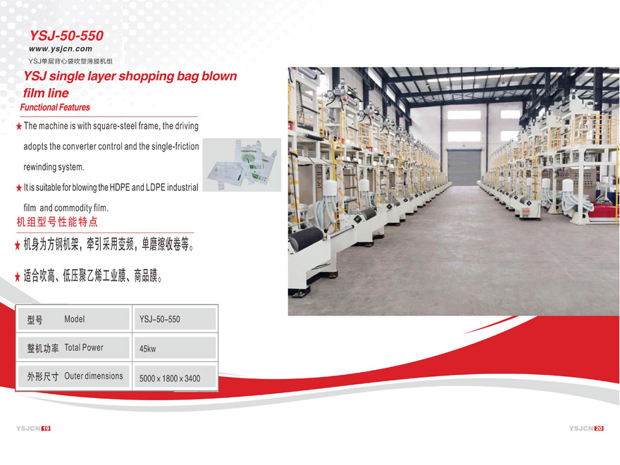 YSJ單層背心袋吹塑薄膜機(jī)組YSJ-50-550